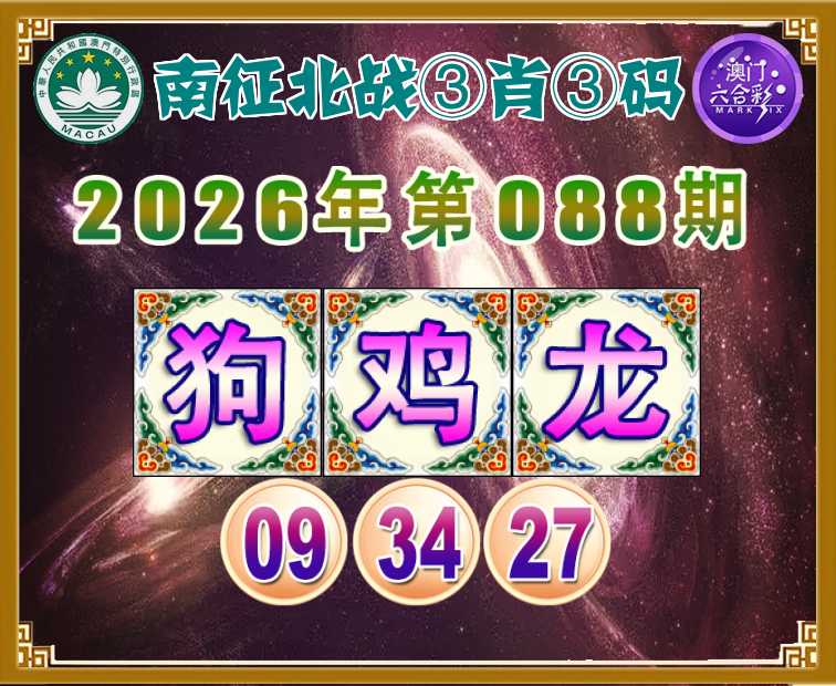 088期:【南征北战】 😳③肖③码😳【狗鸡】【09.34.27】开:龙27