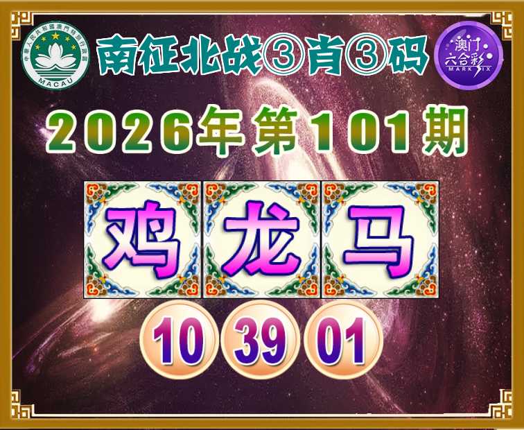 101期:【南征北战】 😳③肖③码😳【鸡马】【10.39.01】开:龙39