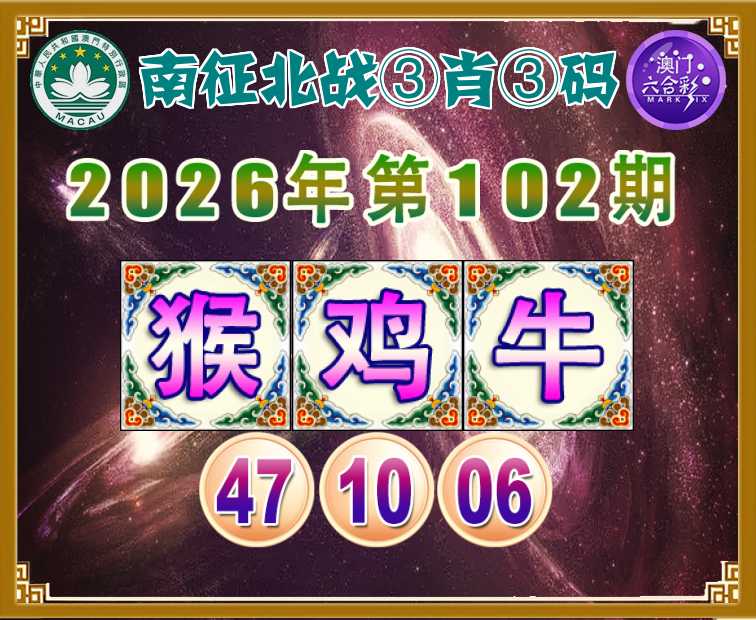 102期:【南征北战】 😳③肖③码😳【猴鸡牛】【47.10.06】开:猪20